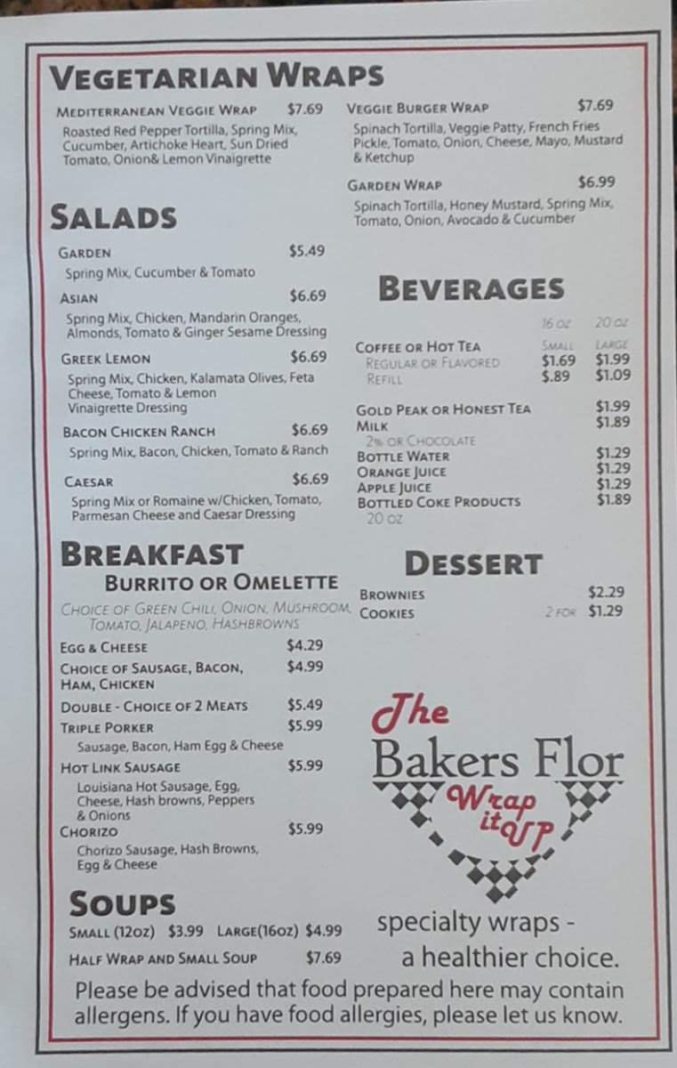 Wrap It Up - Bakers Flor Cafe Menu (Update 2025)